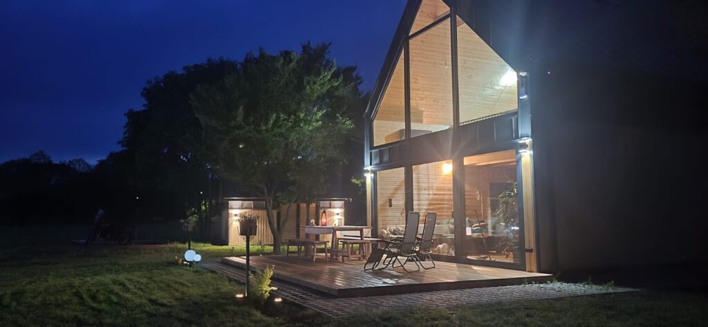 Nasz obiekt wypoczynkowy usytuowany na pięknej posesji w sercu Nidzickiej Puszczy. Całoroczny domek komfortowo urządzony z kuchnią, łazienką, sauną i jacuzzi.